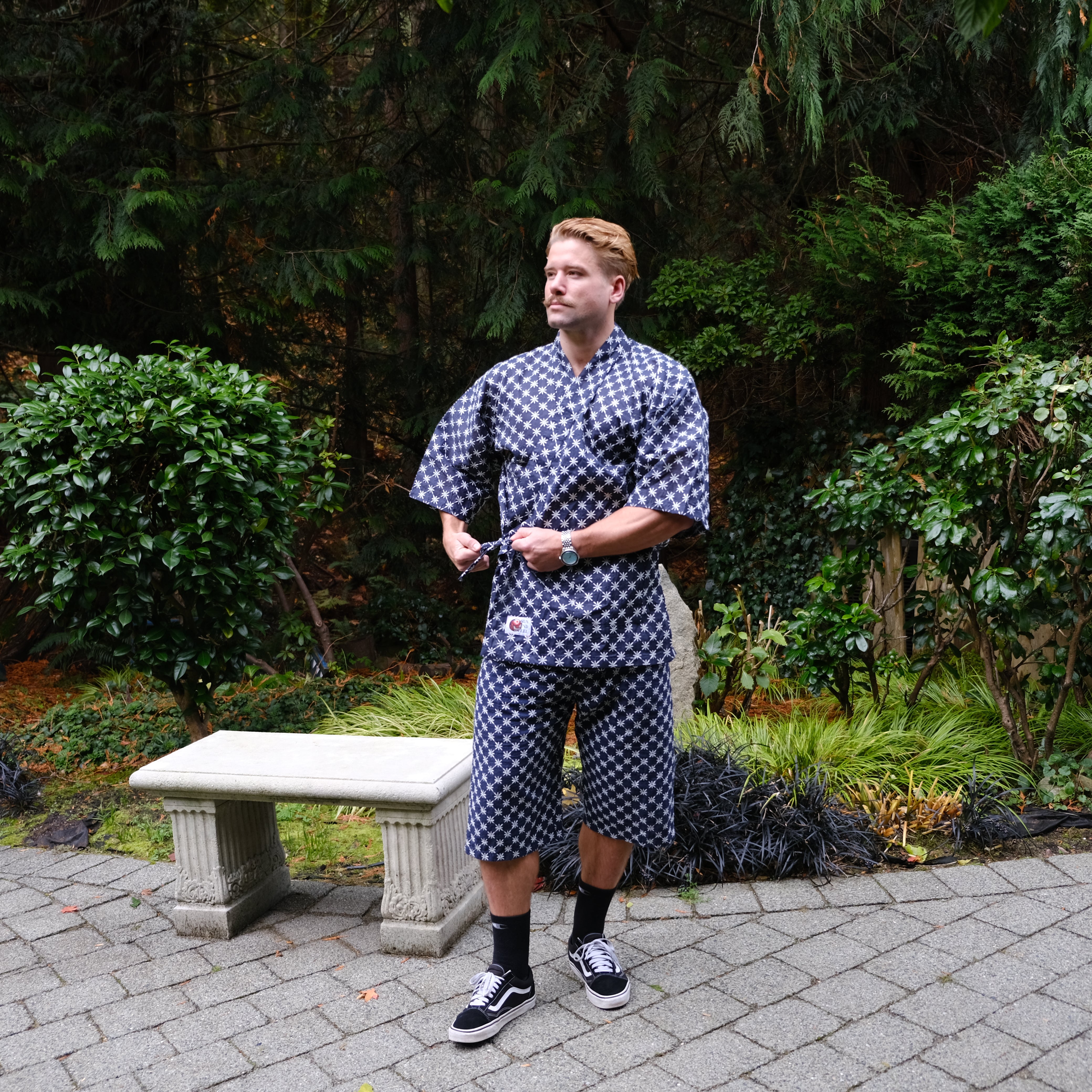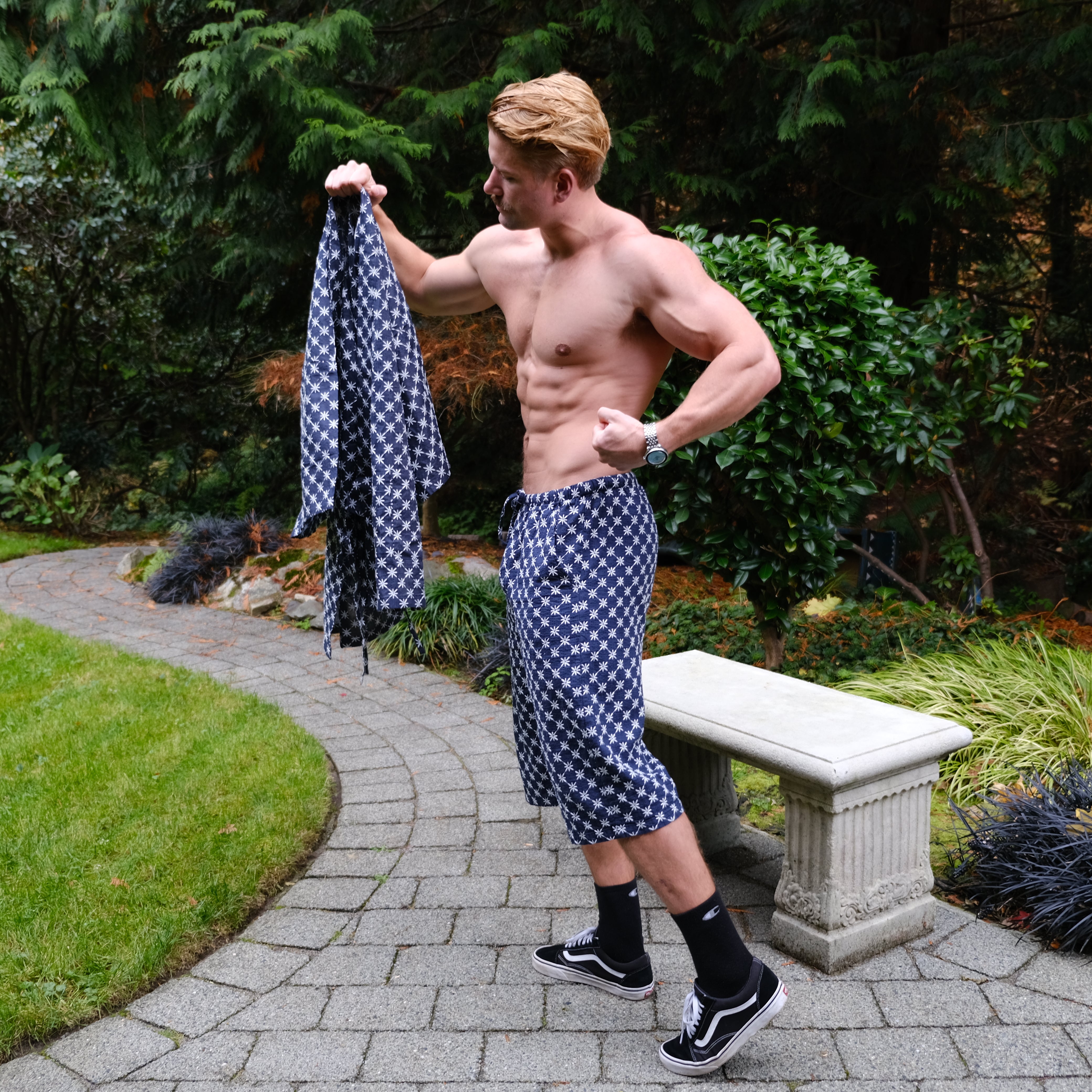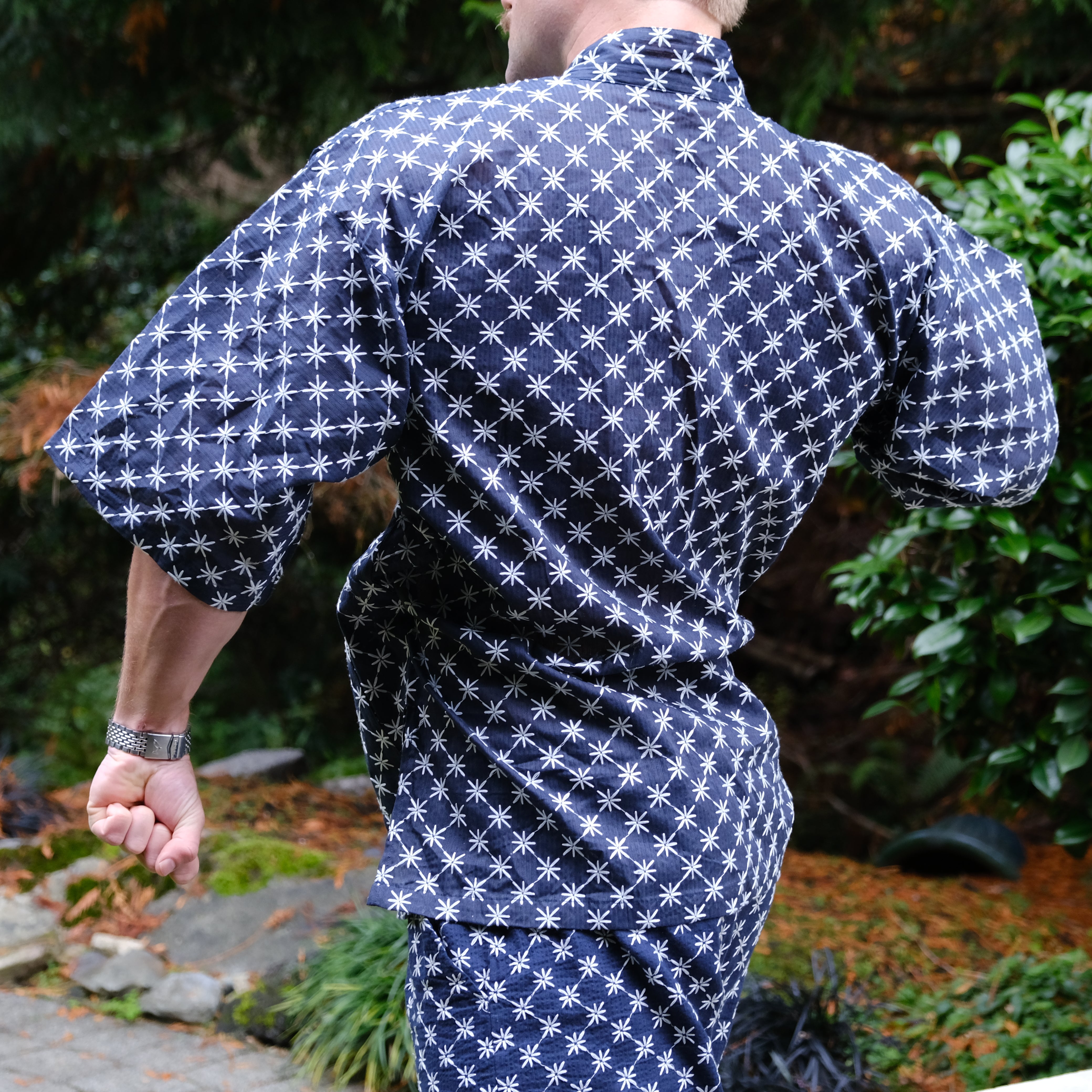 The Sun And Steel Gym Gi - A rare blend of comfort and confidence. The ultimate fit for the gym, sauna, cold plunge, beach and around the house. This timeless style is 100% organic cotton, custom embroidered with traditional Japanese Shashiko stitching.