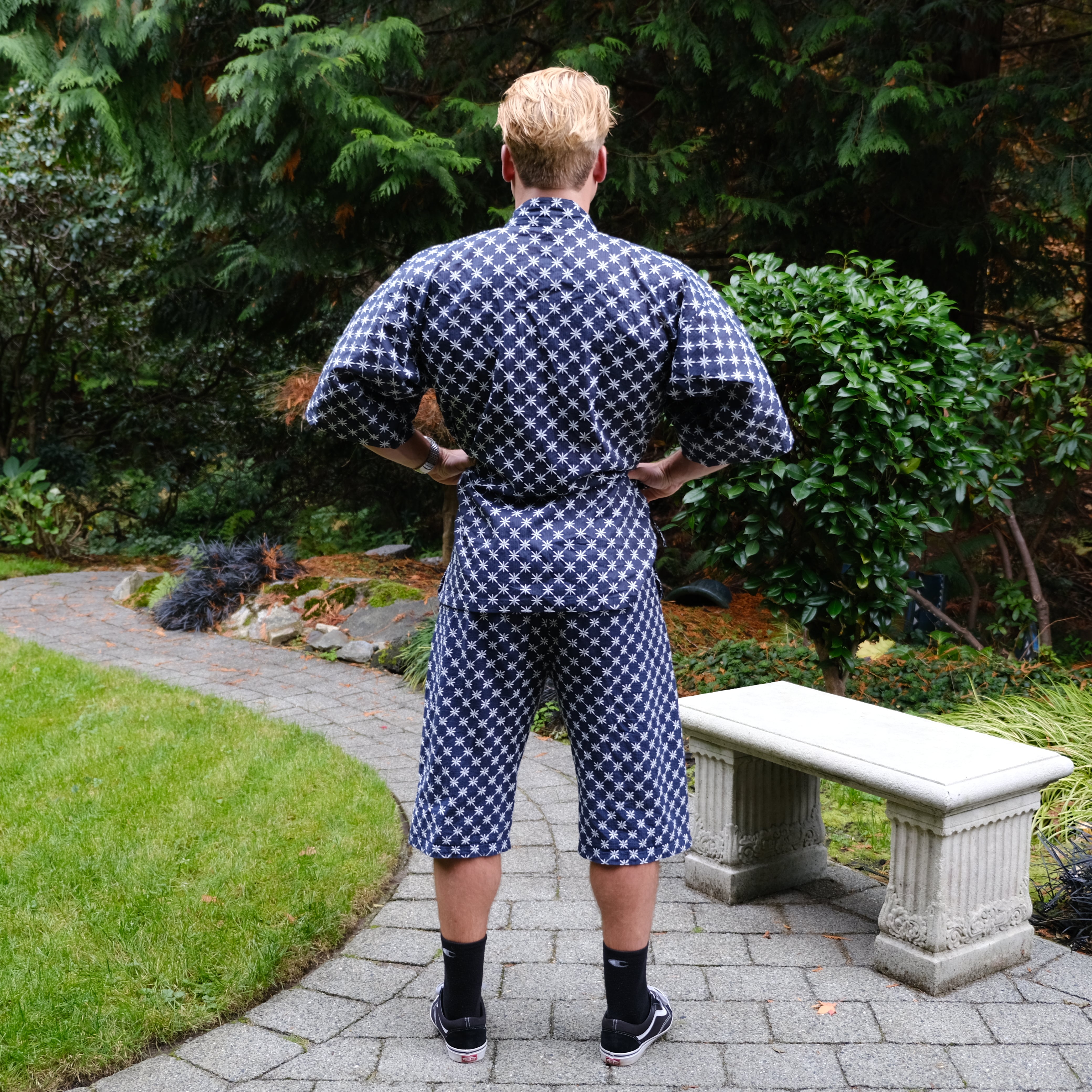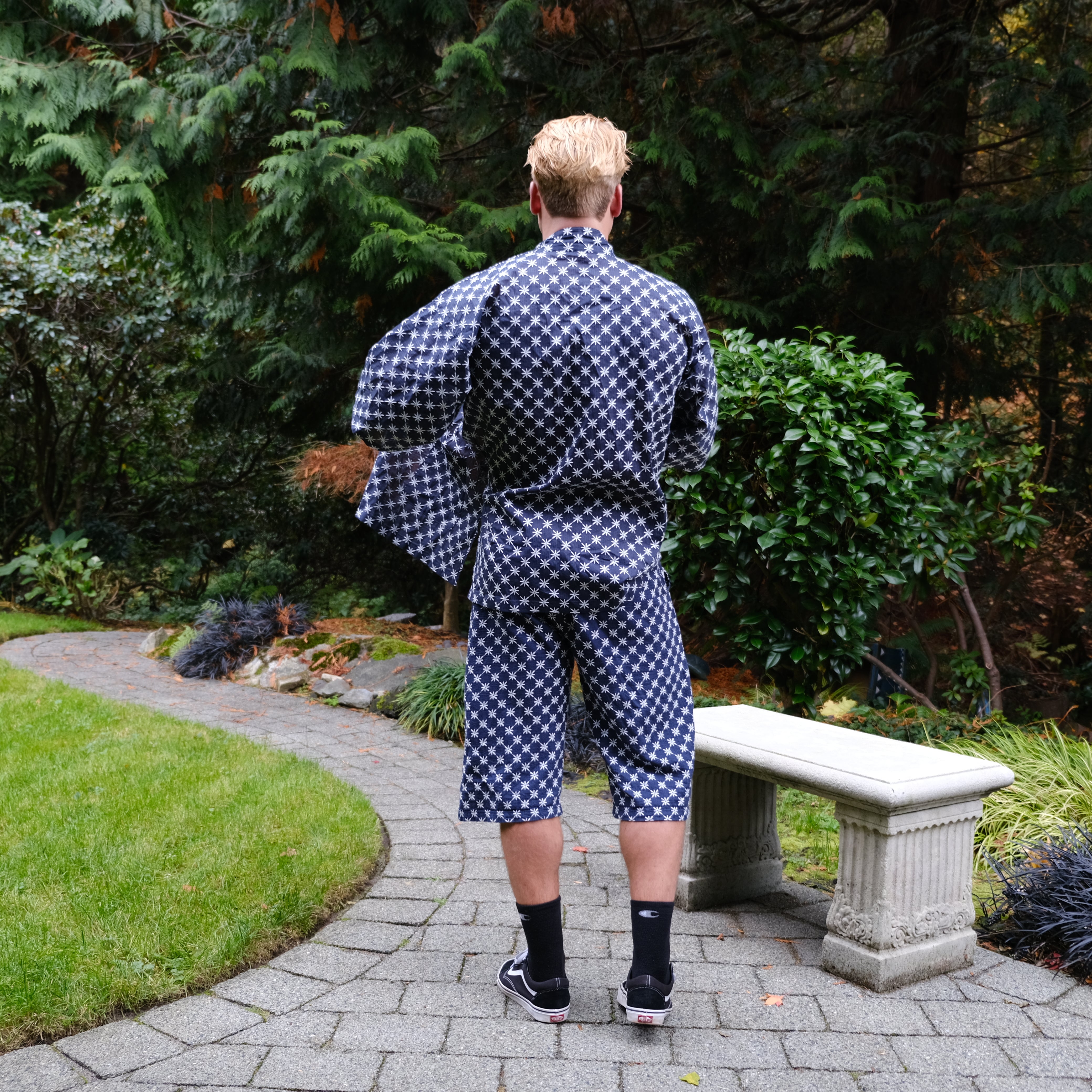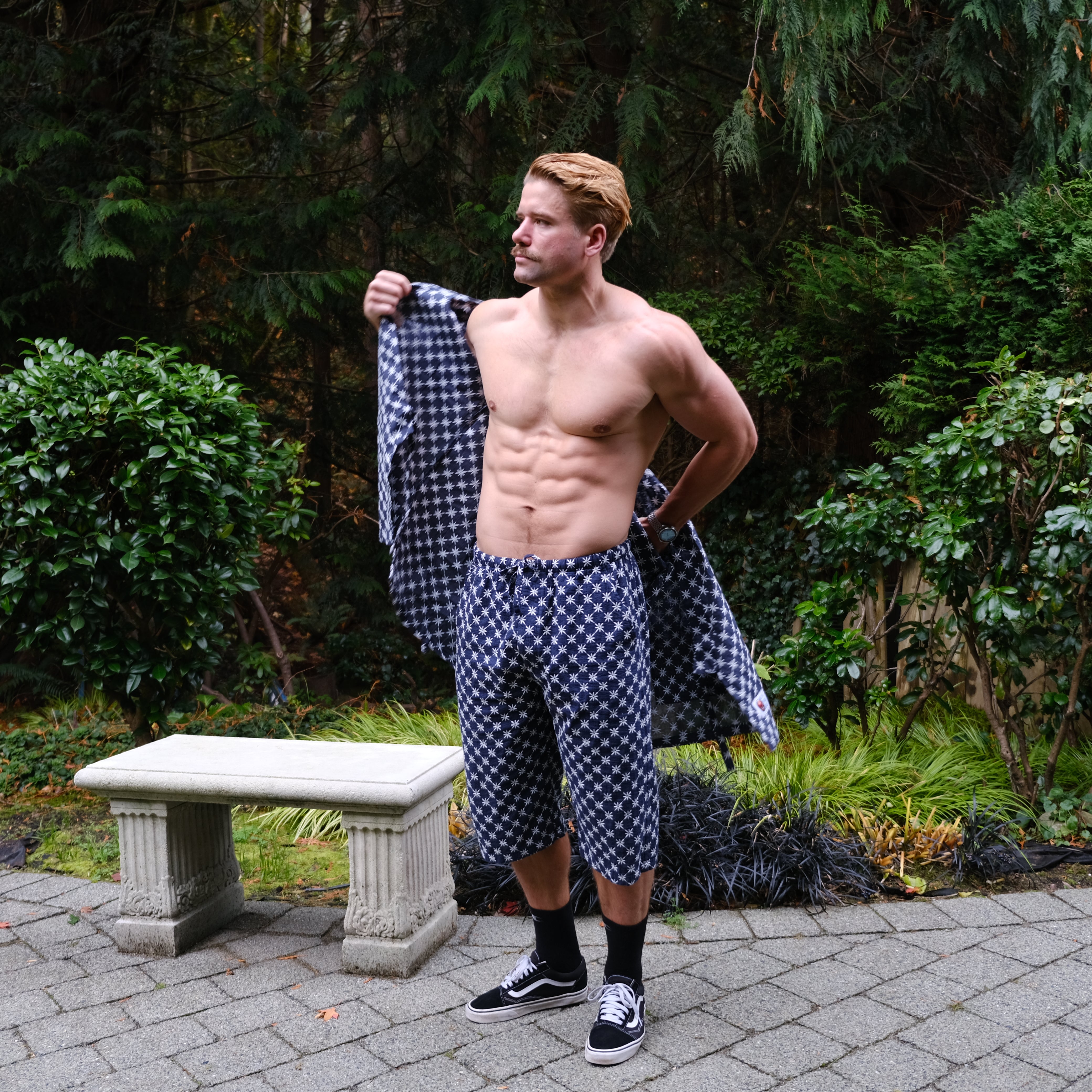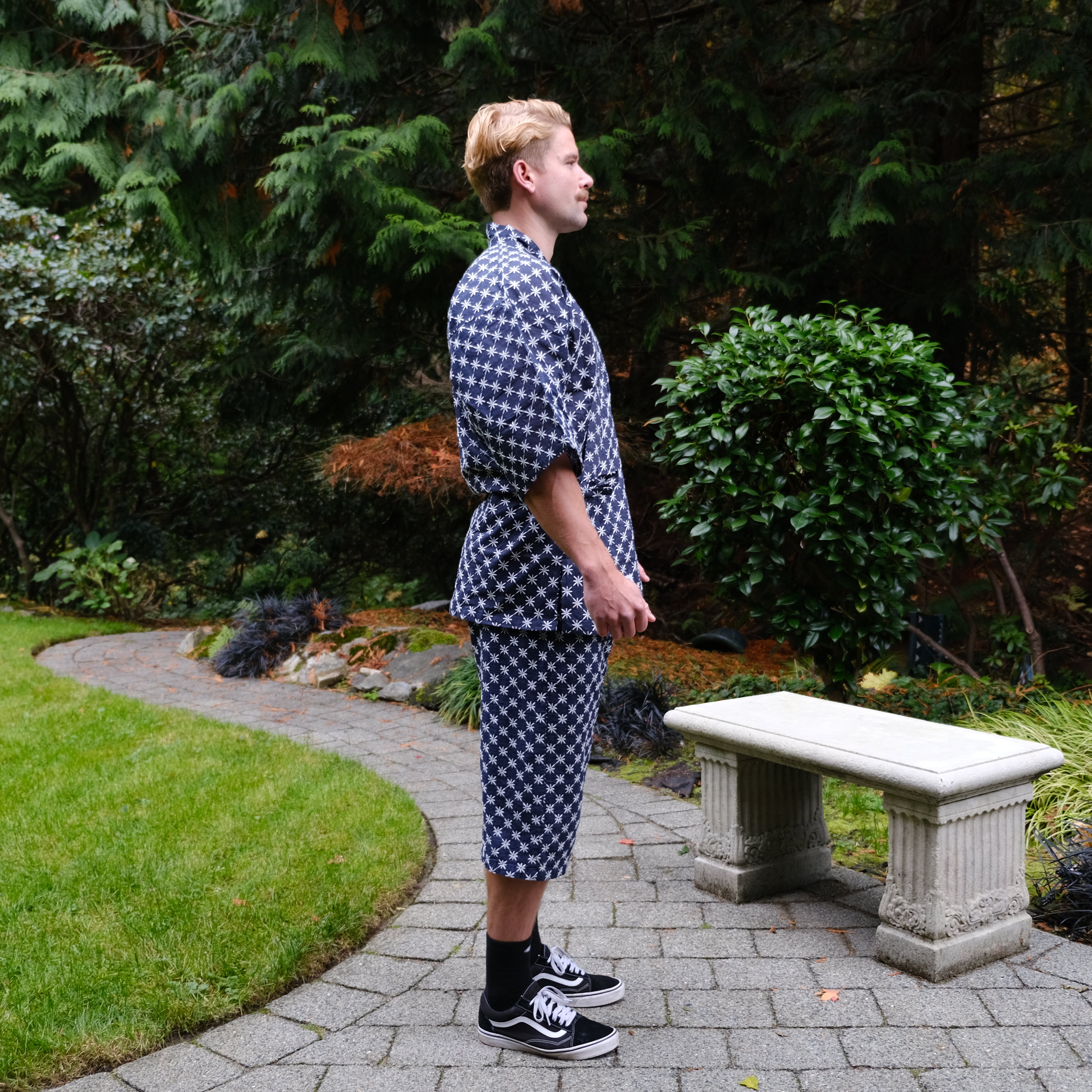 The Sun And Steel Gym Gi - A rare blend of comfort and confidence. The ultimate fit for the gym, sauna, cold plunge, beach and around the house. This timeless style is 100% organic cotton, custom embroidered with traditional Japanese Shashiko stitching.